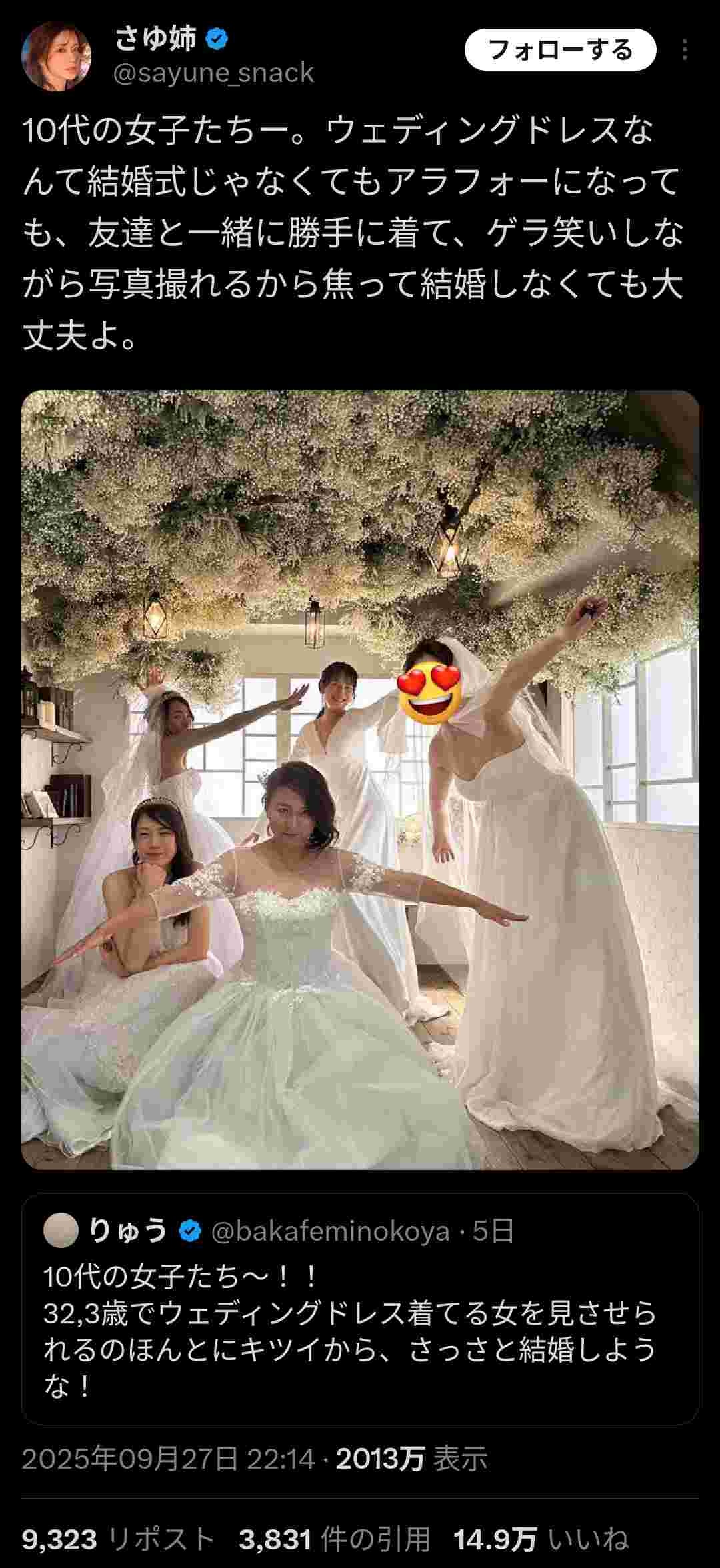 結婚式はあげずにコスプレ写真だけ撮れば安上がりだw - 25 名前:ここからは表現の自由でイカせていただきます 投稿日時:2025/09/30(火) 00:36:53.67 ID:rrDgpJRP0