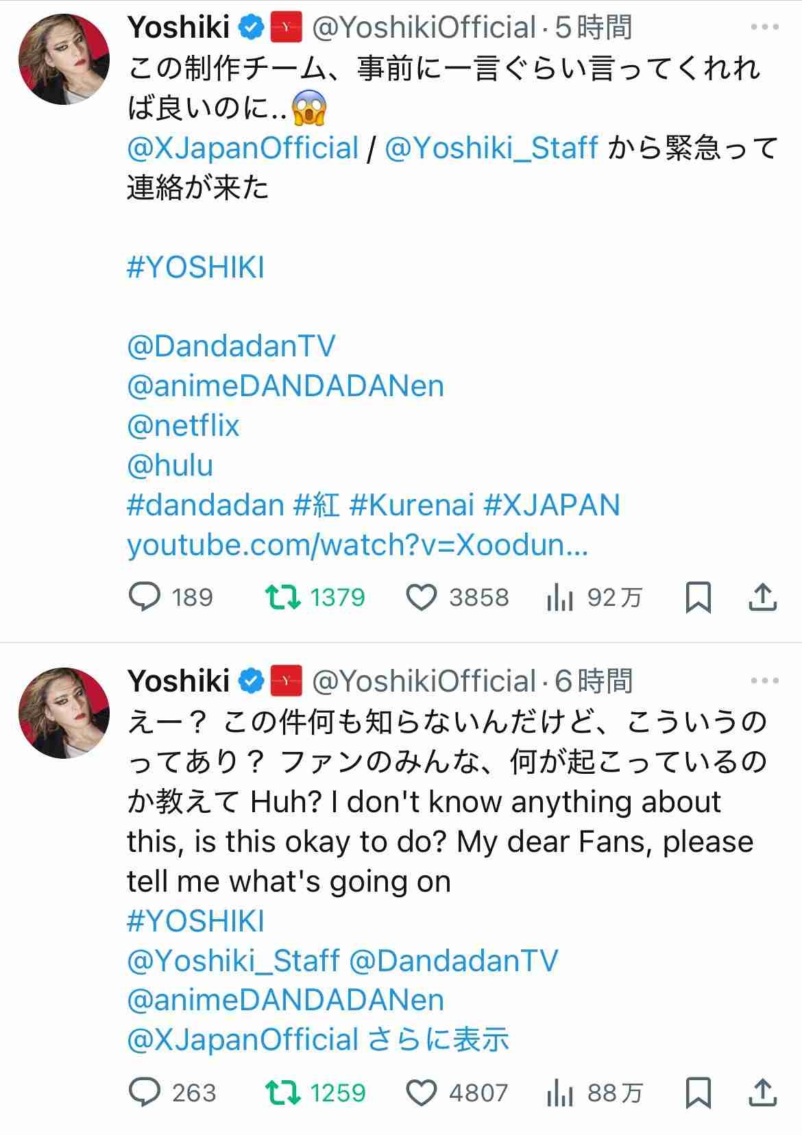 - YOSHIKI アニメ『ダンダダン』劇中歌の“パクり騒動”終結も「コラボは要らない」「納得いかない」ネット怒り