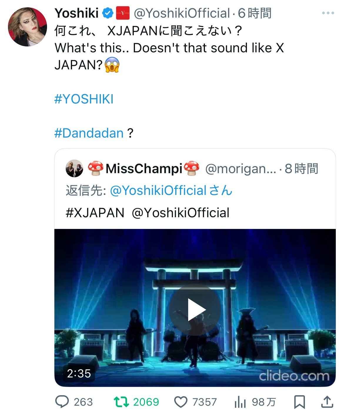 - ダンダダンの作者は分かっててYOSHIKIをお囃子とか言って茶化してバカにしてたから単なるパクリパクられじゃなくて明確な誹謗中傷だよ