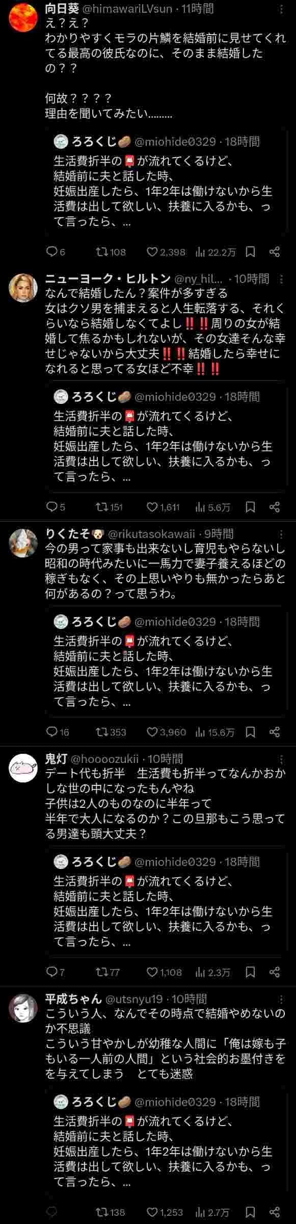 - こういう思考の女ってろくな男と結婚しないから不満垂れてるんだろ