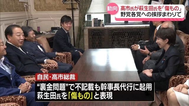 高市総裁、野党各党に挨拶まわり萩生田氏を「傷もの」と表現