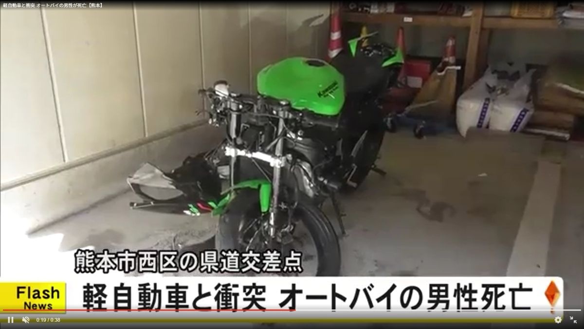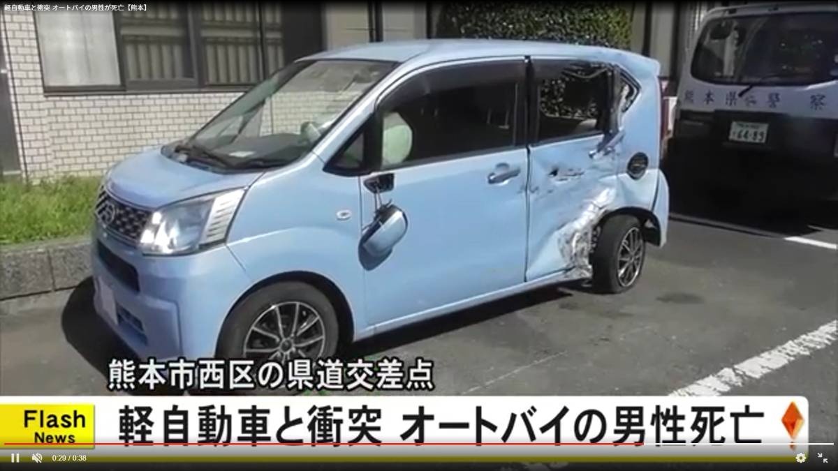 10日午前6時20分ごろ、熊本市西区池上町の県道交差点で、右折しようとした軽自動車が直進してきたオートバイと衝突しました。