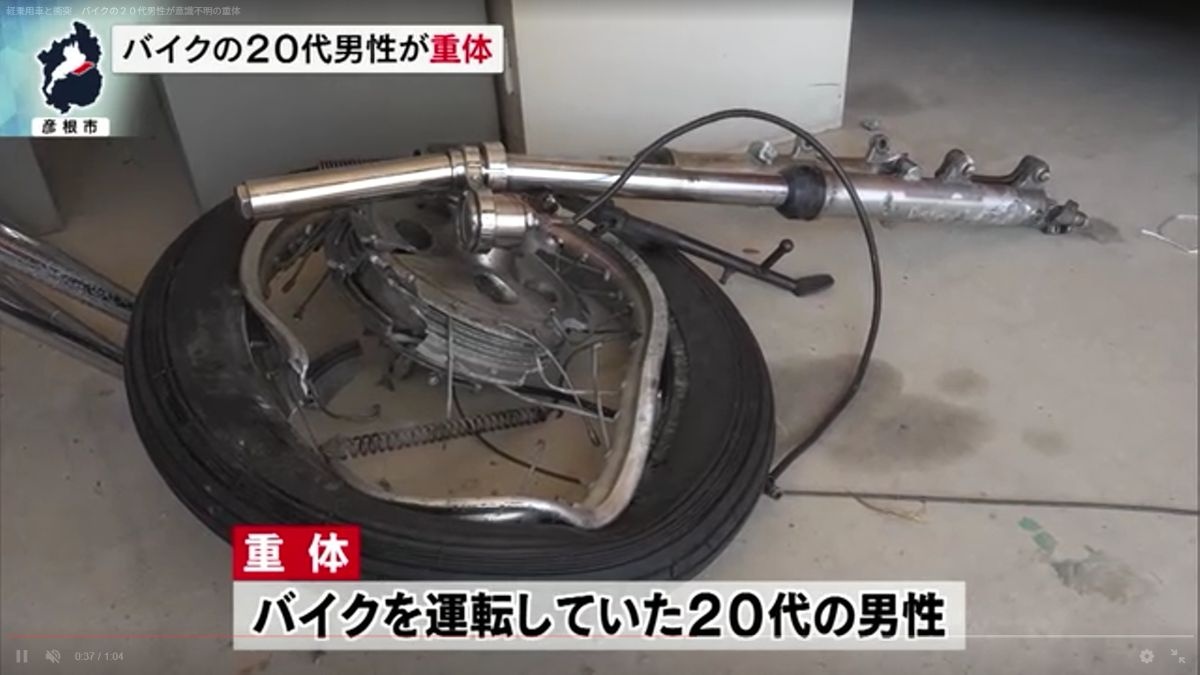 10日早朝、彦根市の国道でバイクと軽乗用車が衝突する事故があり、バイクを運転していた20代の男性が意識不明の重体です。