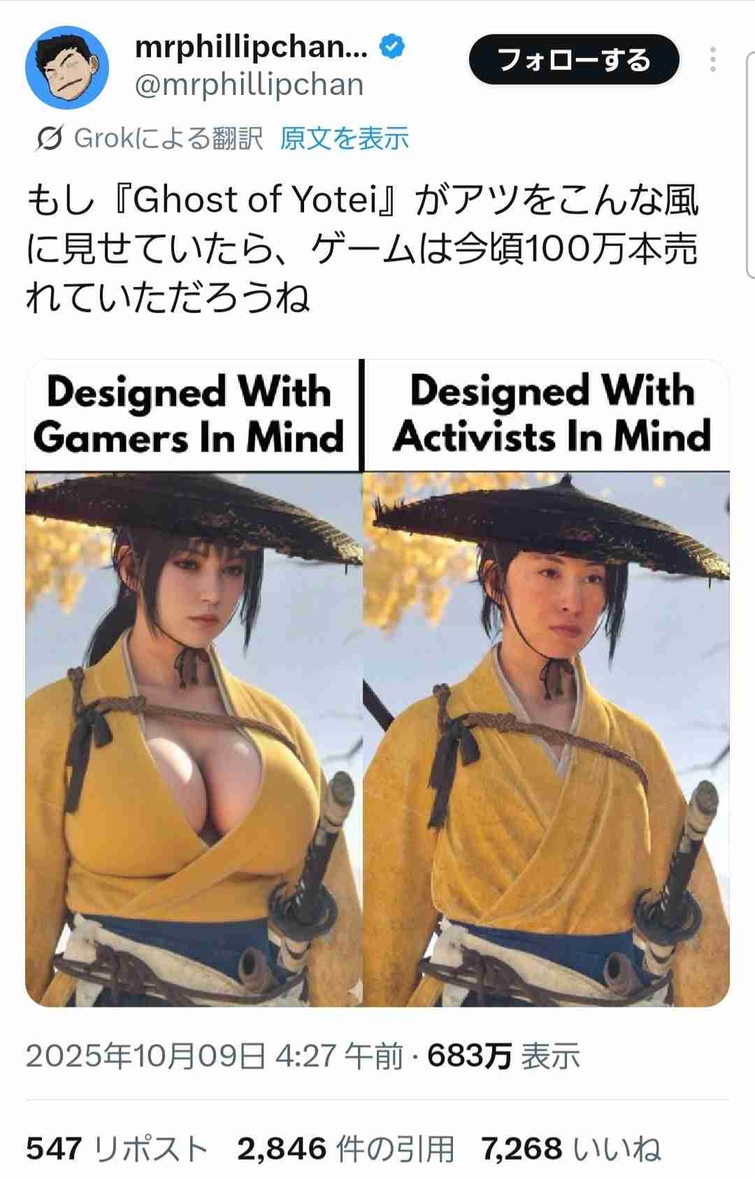 「ゴーストオブヨウテイはポリコレすぎ!主人公を爆乳美女にしてたら売れた!」683万人が同意