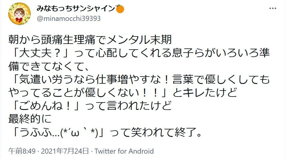 - 生理がどうとかいうセリフだとしても心配してくれるだけマシだろうに
