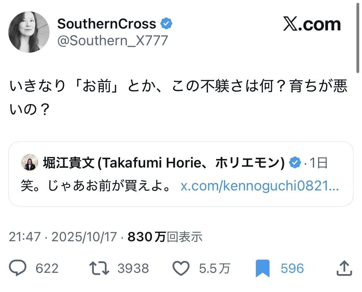 ネトウヨは高市を助けた堀江さんに敬意を表するべきじゃないのか - 150 名前:ここからは表現の自由でイカせていただきます 投稿日時:2025/10/18(土) 17:29:10.69 ID:SSTJWdzDH