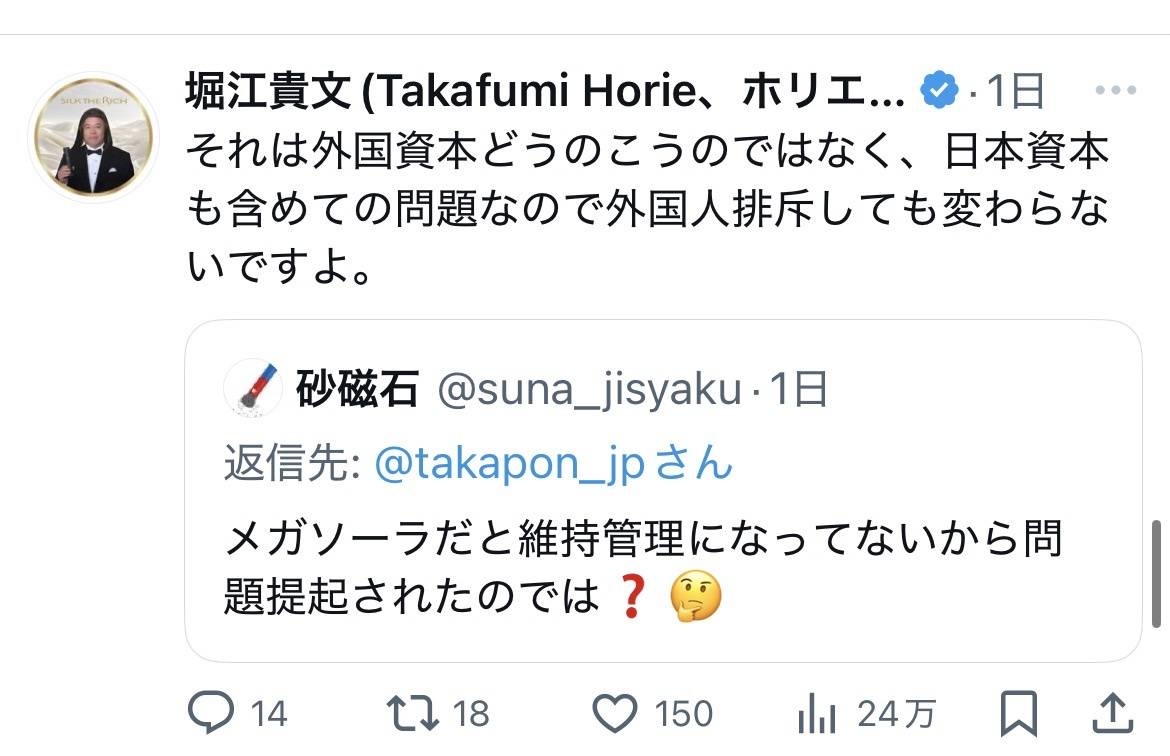 - 堀江は別に好きじゃないけどこれは完全な正論だな