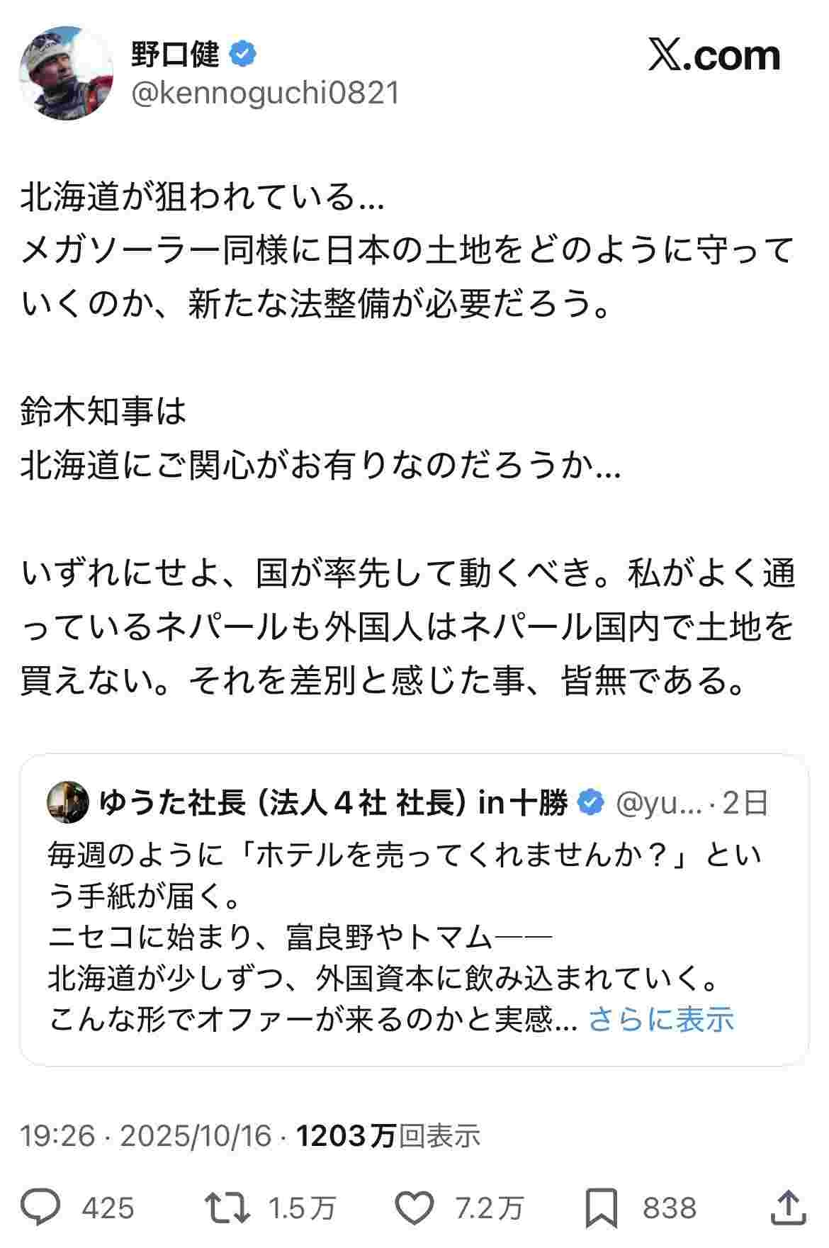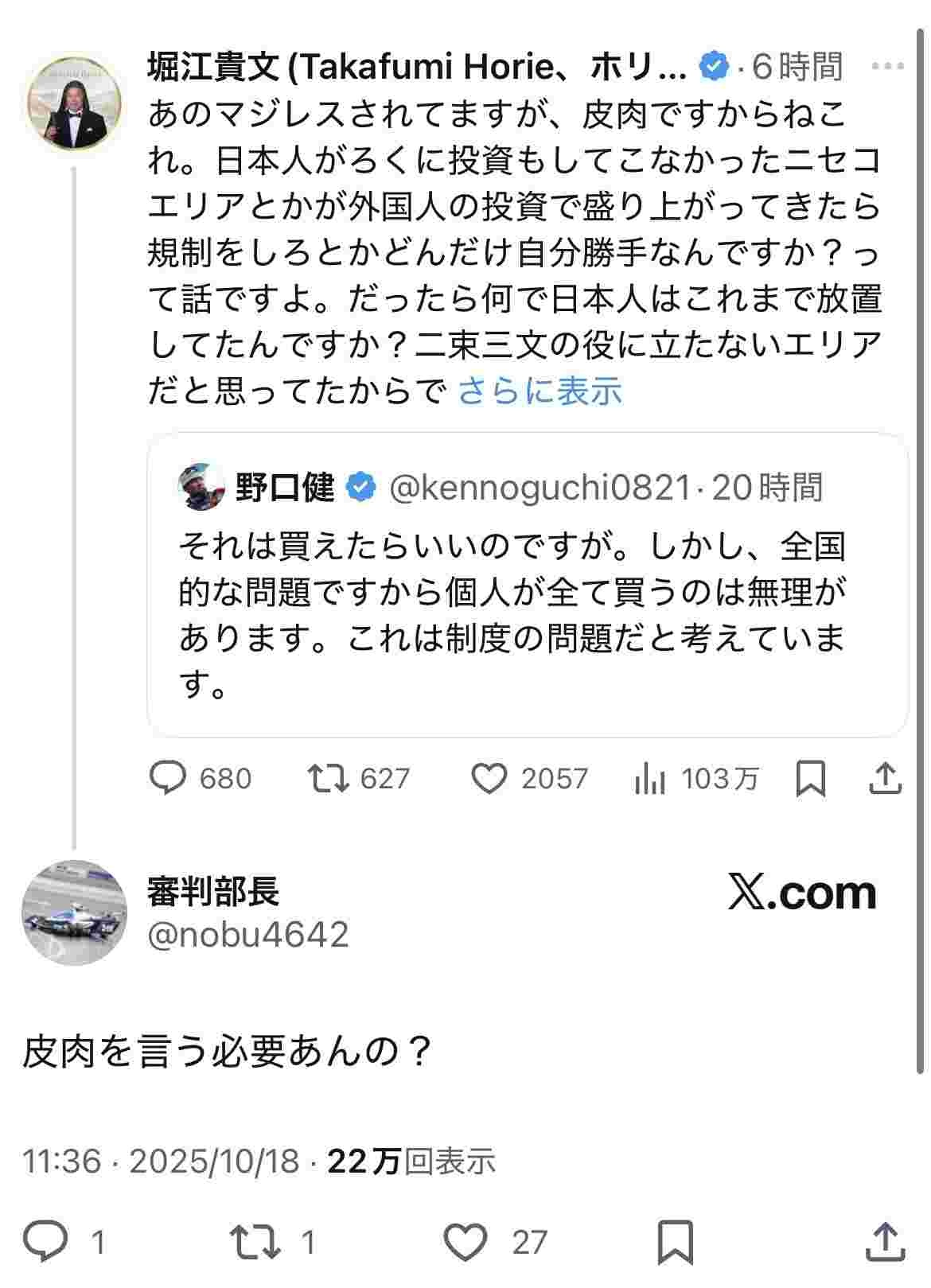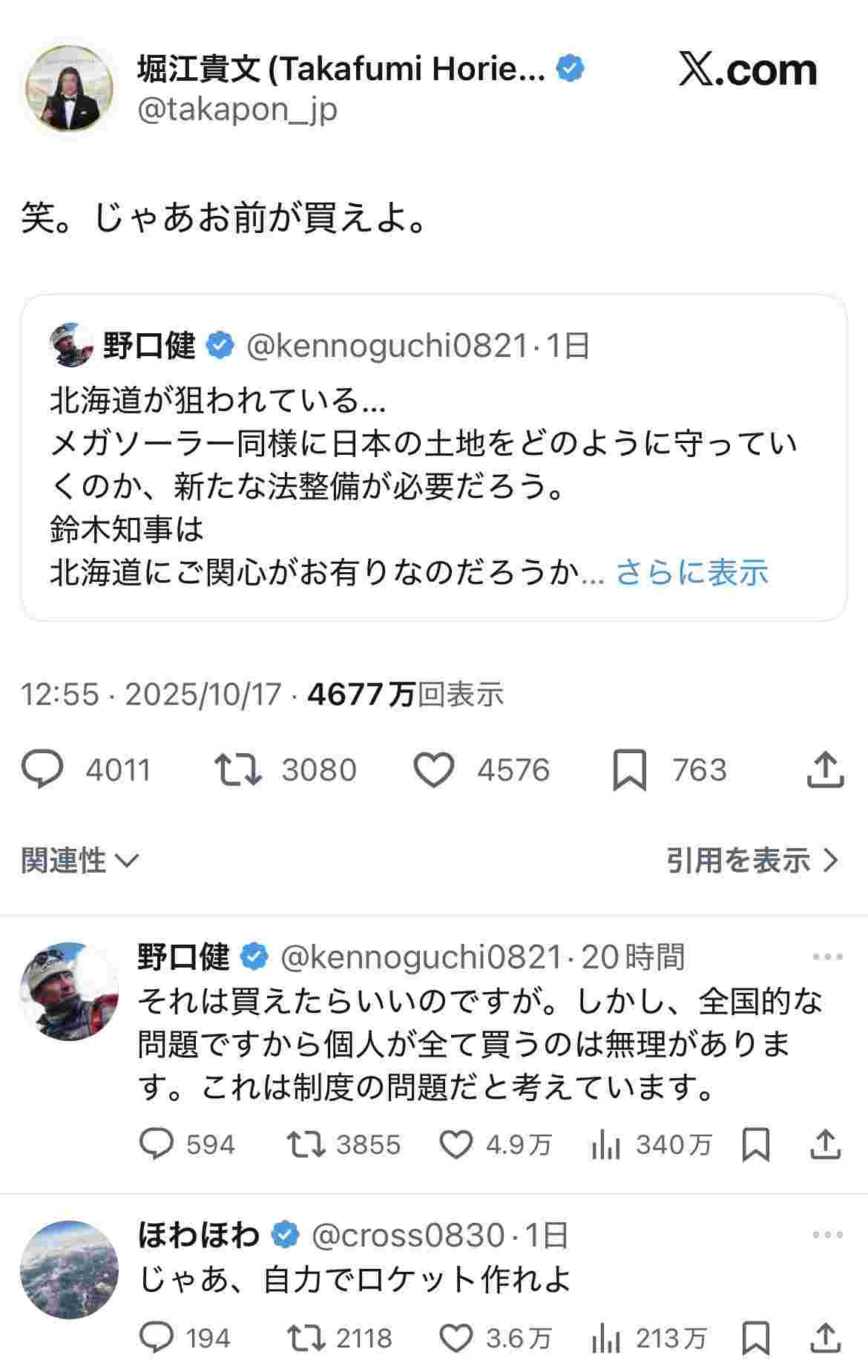 野口健「北海道が海外資本に狙われている!」ホリエモン「じゃあお前が買えよ笑」ネトウヨブチギレ、ホリエモンも応戦し大戦争に