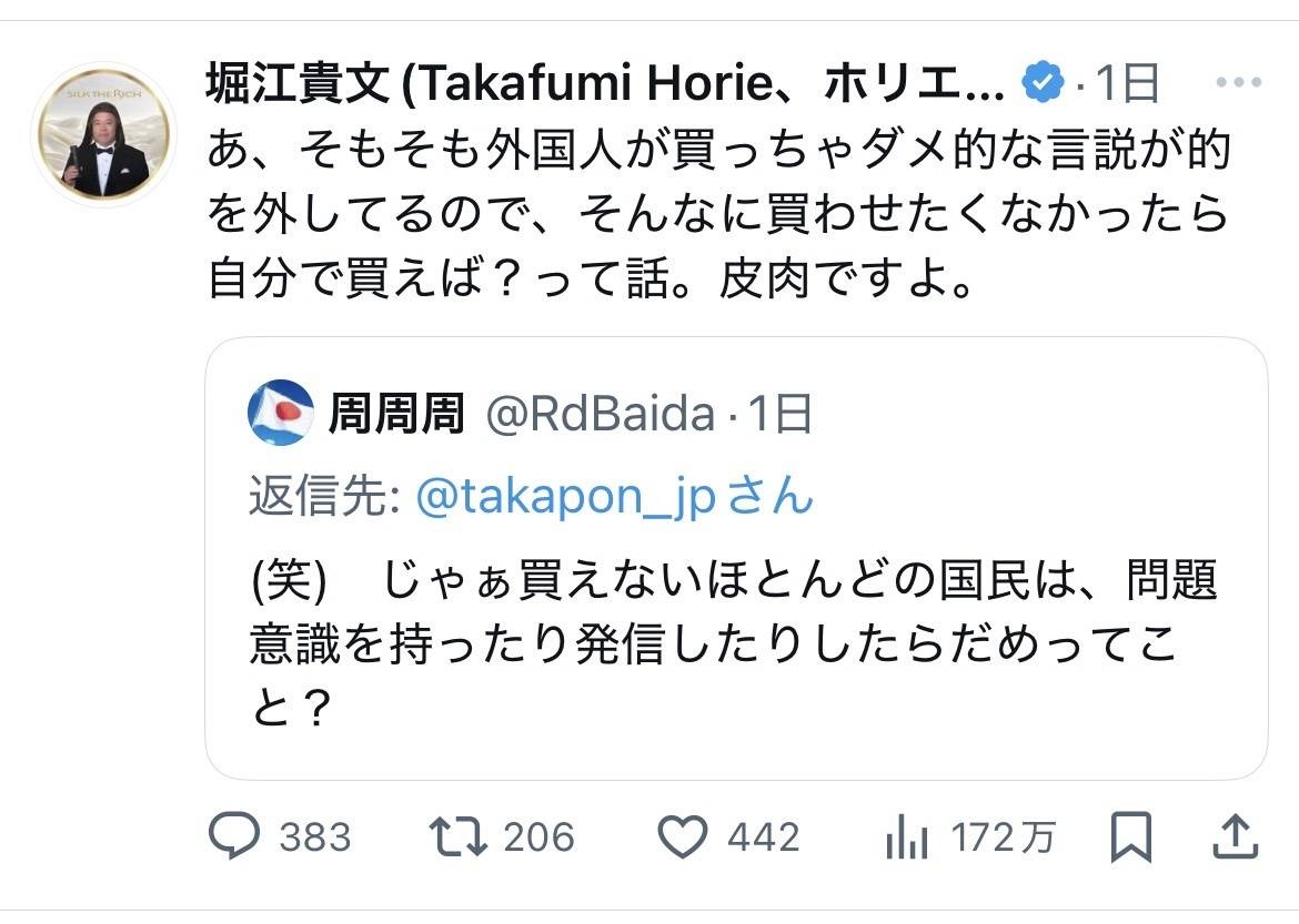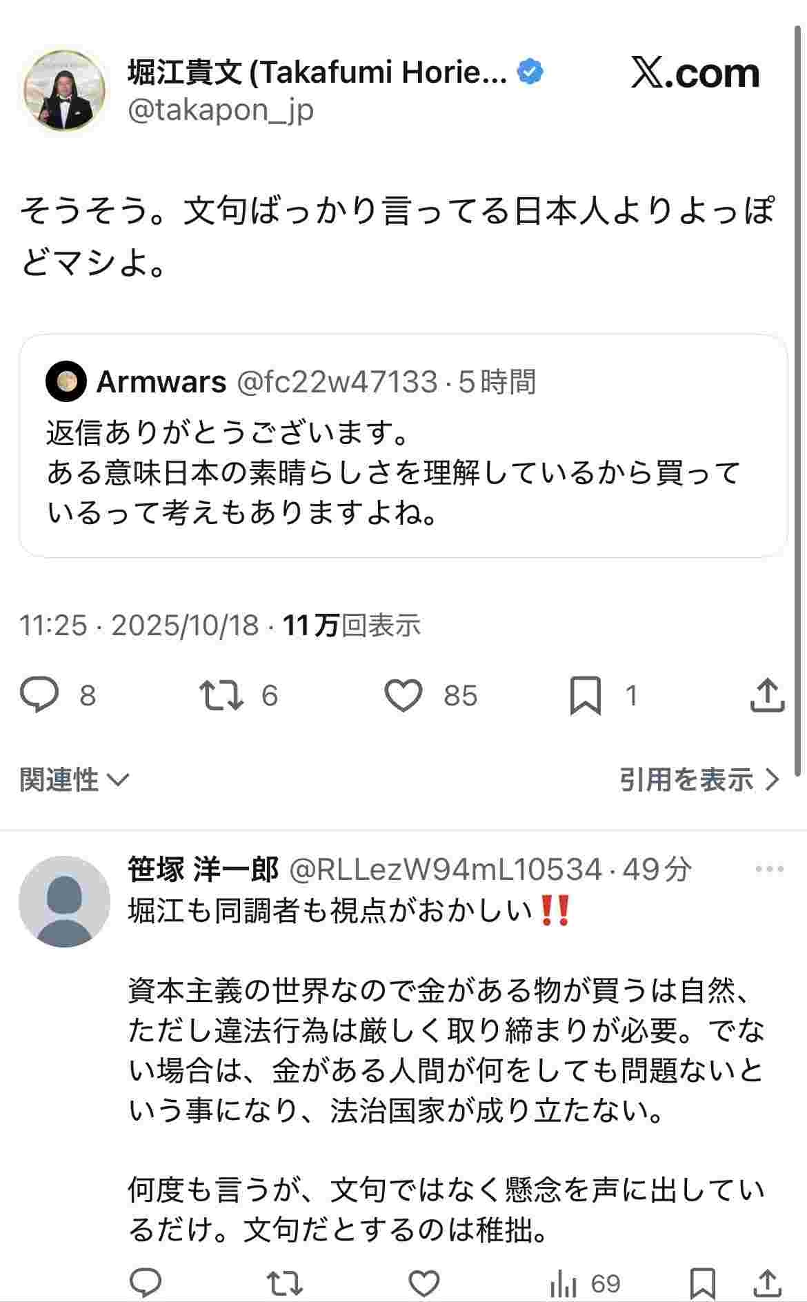 3枚目でホリエモンがわかりやすく説明してるのに、白痴こじらせてるネトウヨが笑える - 110 名前:ここからは表現の自由でイカせていただきます 投稿日時:2025/10/18(土) 17:23:42.98 ID:SmhFyrXsM