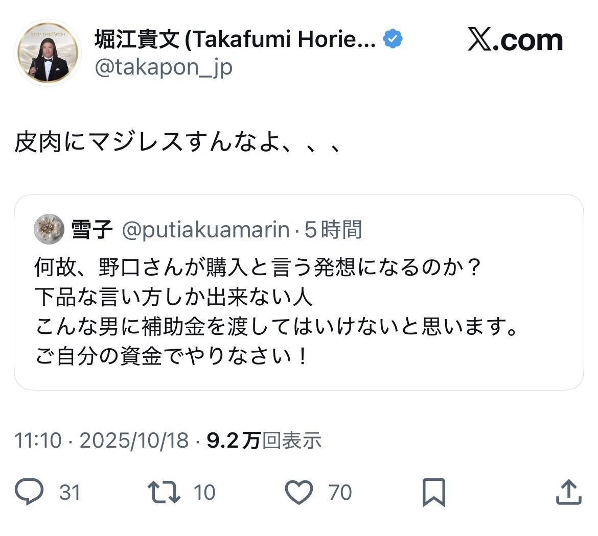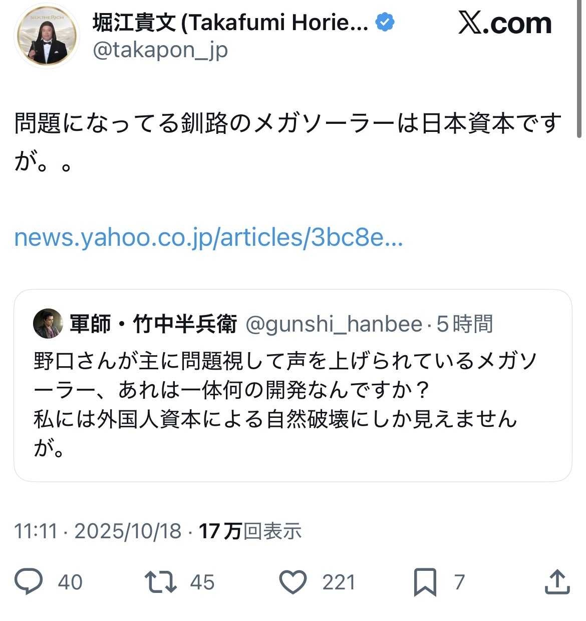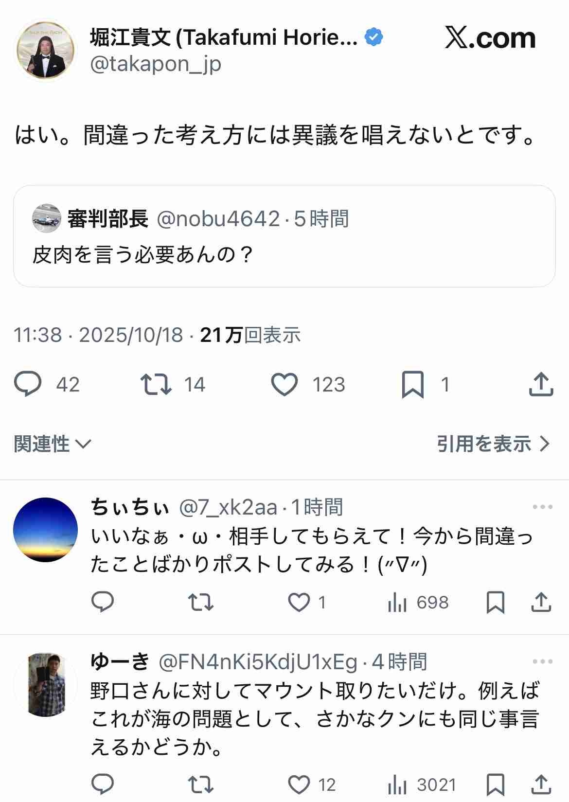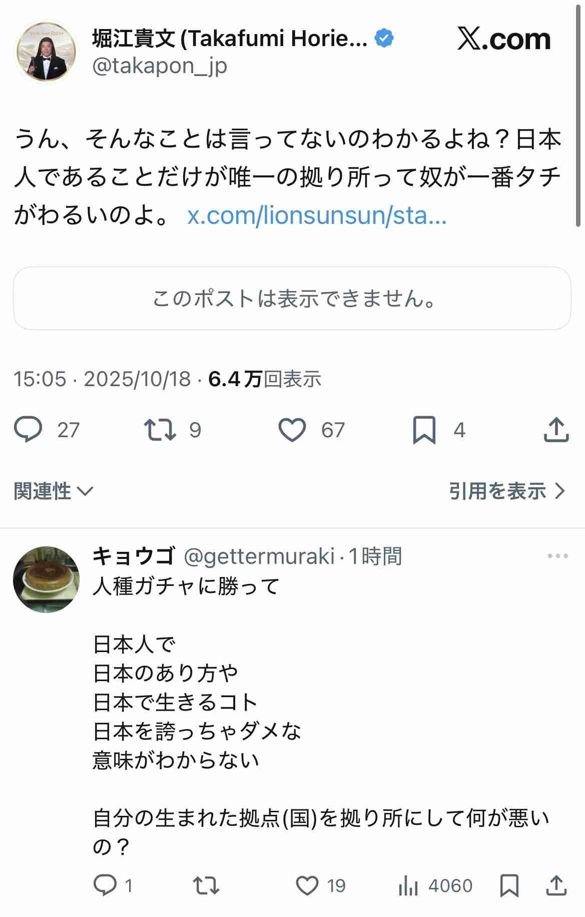 - 反参政党だし反高市だし最近のホリエモンはネトウヨ裏切りまくりだからな