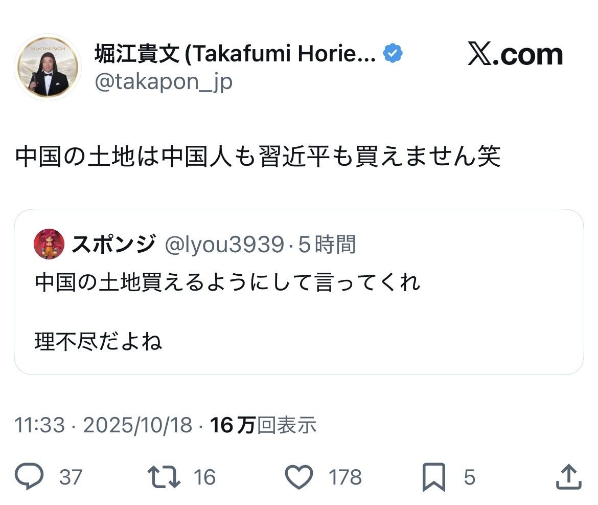 中国人が買っても中国の土地になるわけではない、日本への投資とか - 93 名前:ここからは表現の自由でイカせていただきます 投稿日時:2025/10/18(土) 17:21:52.26 ID:TjgNqYL10