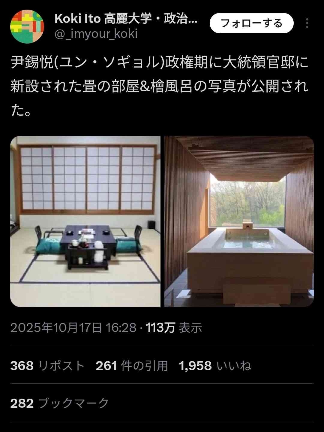 韓国前大統領・尹、ガチの親日派だった、大統領官邸に和室を作っていたことが判明