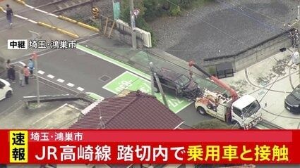 現場は北鴻巣駅と鴻巣駅間の踏切。乗用車は遮断機を突き破って、前部が踏切内に進入したという。同乗者はいなかった。JR東日本首都圏本部によると、列車の乗客約500人と乗員にけが人はいない。