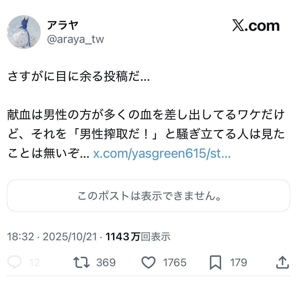 いつもデマかどうかろくに調べもせず勝手に経血撒き散らして発狂する