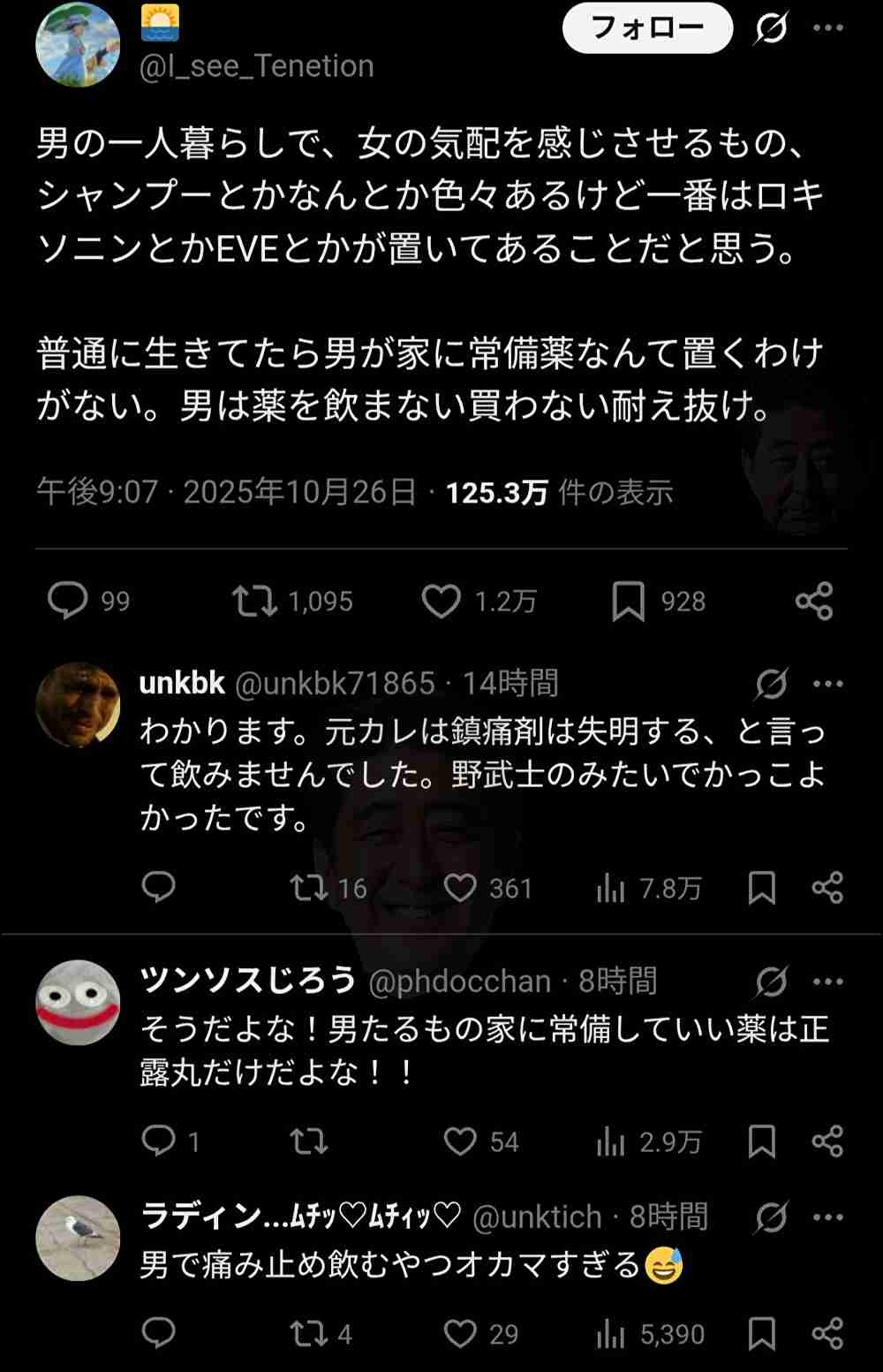 私男だけどロキソニン常備してるよ