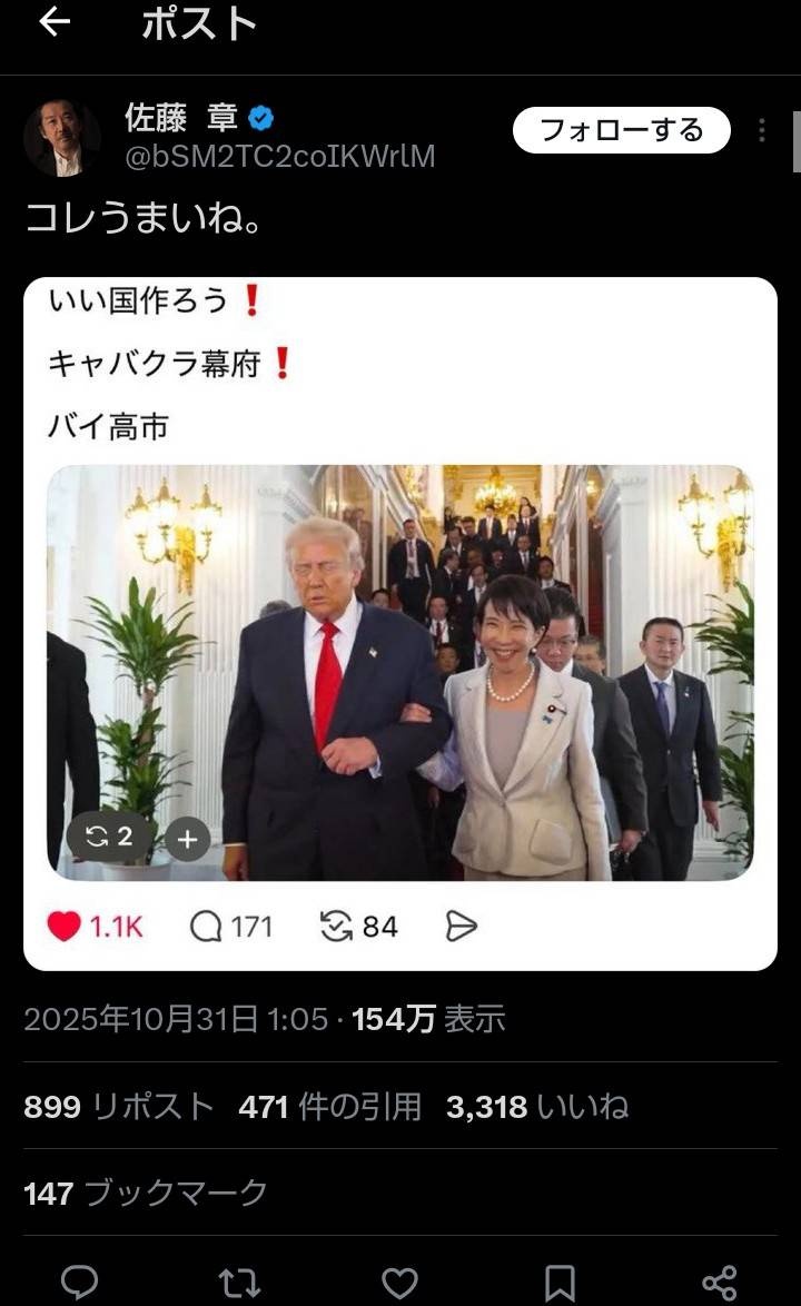 https://x.com/bSM2TC2coIKWrlM/status/1983928162733228481?t=qMHqlltOJPTovfKgVhFzKw&s=19 - 2 名前:ここからは表現の自由でイカせていただきます 投稿日時:2025/11/02(日) 08:30:10.59 ID:rZjA8fem0