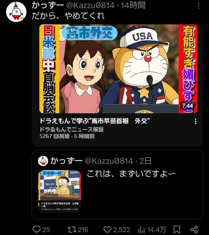 ネトウヨ「AIを使ってドラえもんでニュース解説!高市首相は有能!」ホルホル 炎上