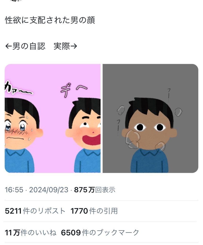 女性「性欲に支配された男の顔がこれ。男の自認はこうだろうけど実際はこうだよ」正論