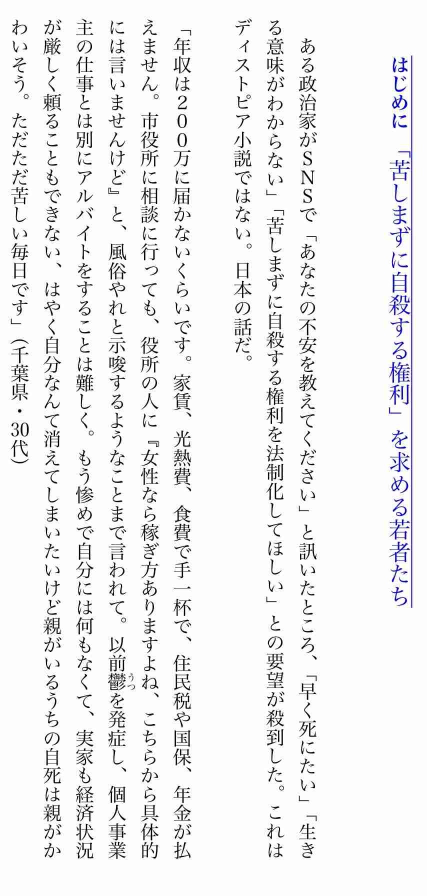 - 自己決定権をどこまで認めるかって話だよな、結局は社会が個人の生を支えきれていないことの裏返しでもある