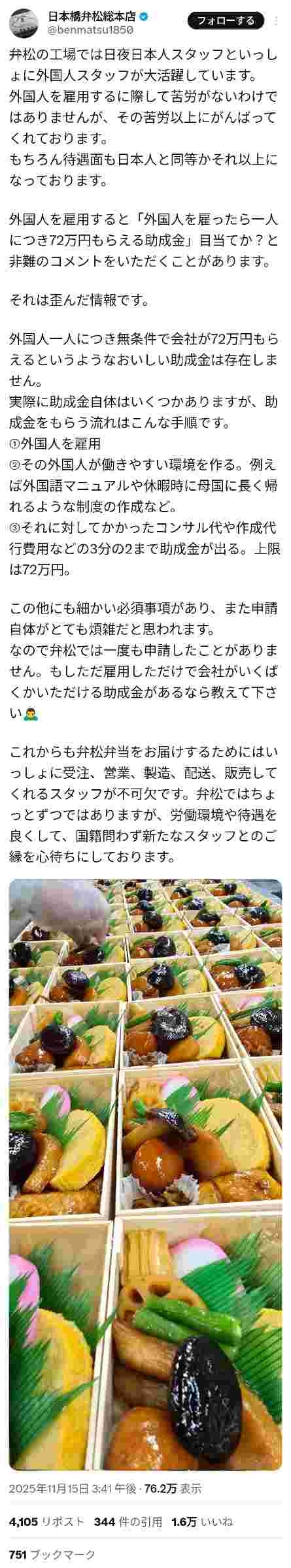 弁松よりもっと外国人雇いまくってる企業なんて幾らでもあるのに「外国人差別?デマ?そんなの俺らは知りませーん」みたいな感じでやってるの、卑怯だろ