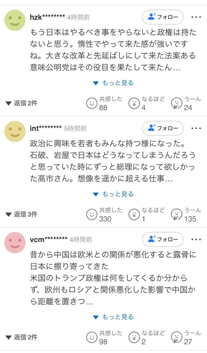 - あそこのコメント欄岸田石破の時は散々批判して自民党には投票しないとか言ってたのに高市になってから全肯定のオンパレード