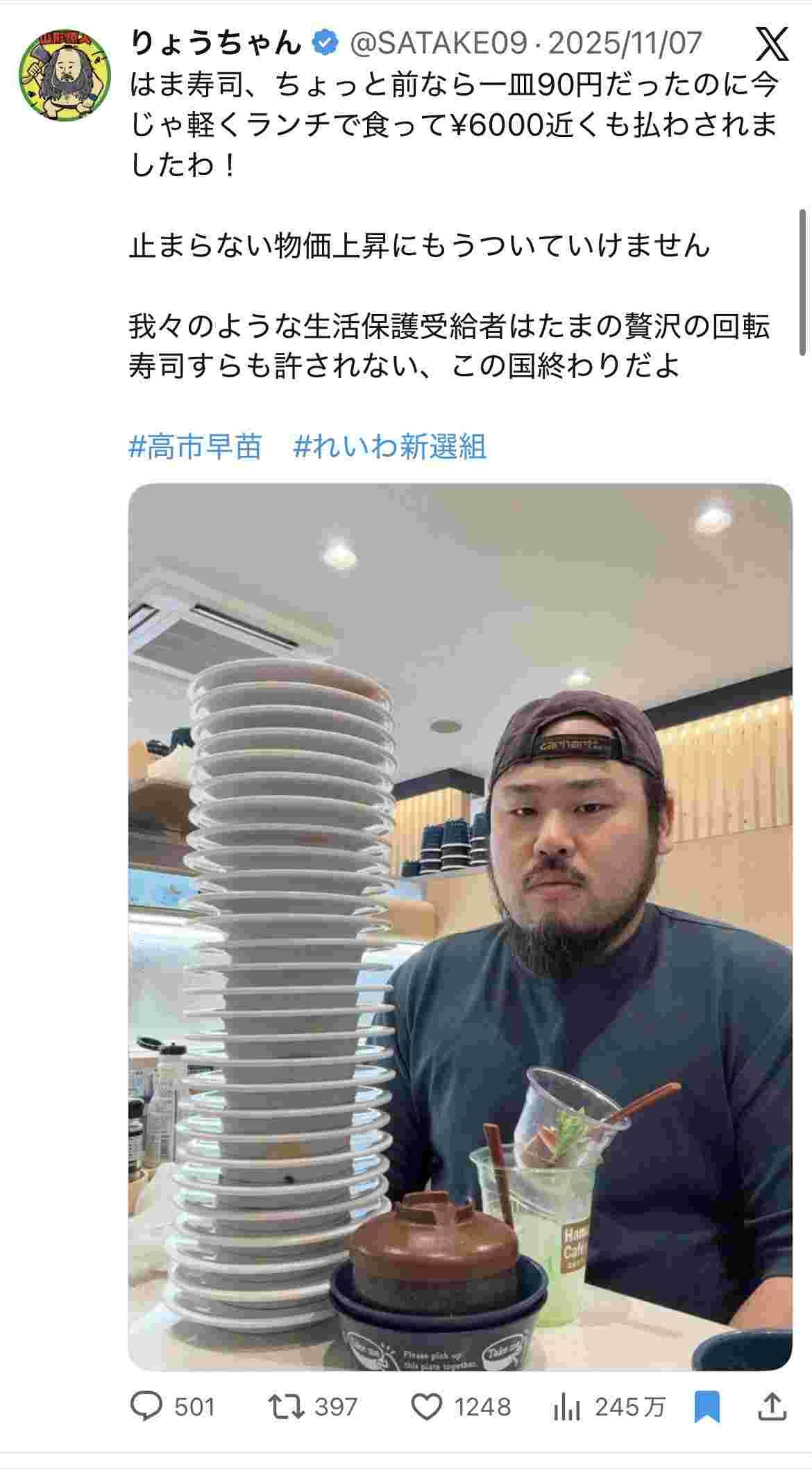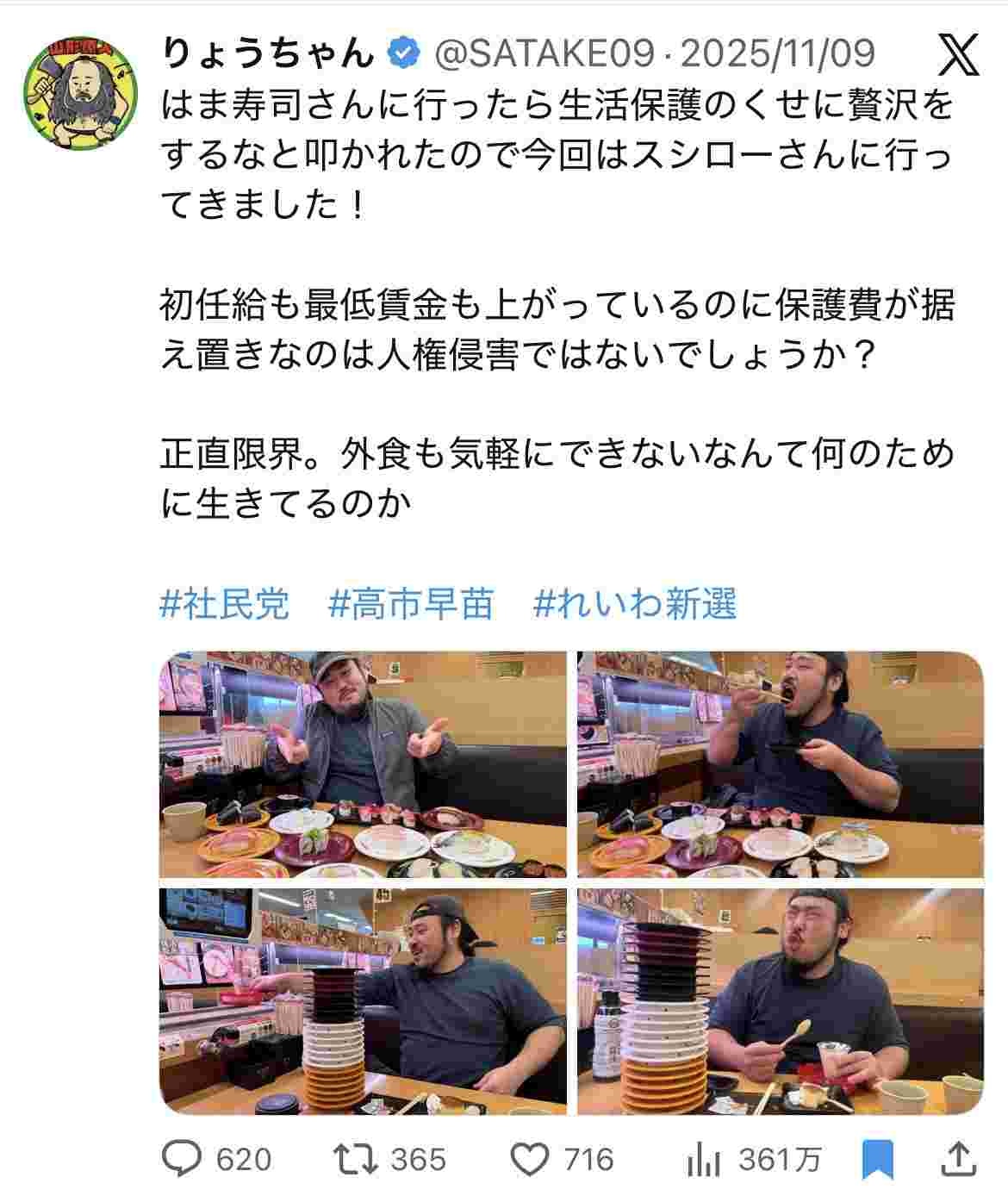 ナマポ「くら寿司に行ったら6000円もした!最低賃金上げるなら保護費も上げろ!正直限界。気軽に外食もできないなんて人権侵害」