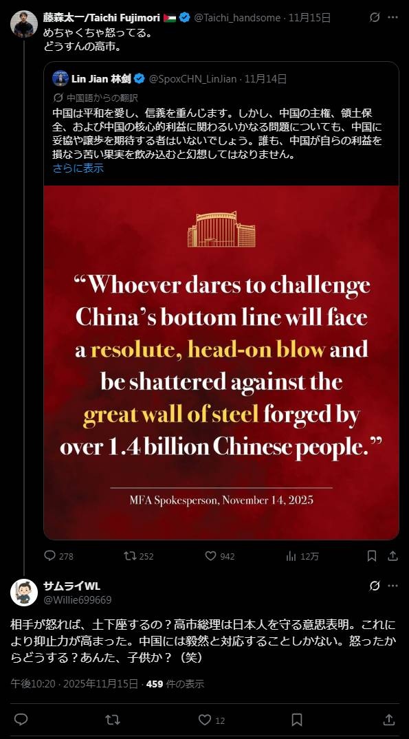 日本はそうならないと言い切るなら、説明して欲しいよ - 51 名前:ここからは表現の自由でイカせていただきます 投稿日時:2025/11/23(日) 17:45:08.38 ID:orifYXs/0