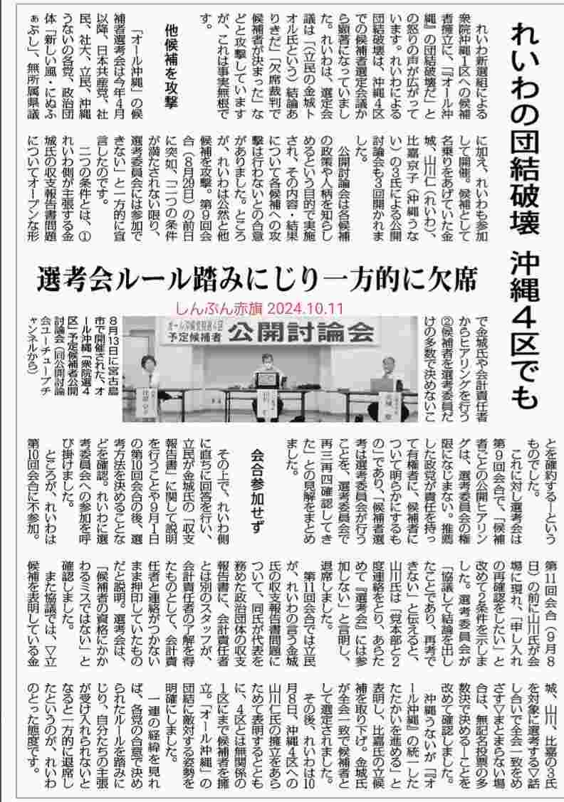 https://greta.5ch.net/test/read.cgi/poverty/1728684303/れいわの団結破壊 沖縄4区でも 選考会ルール踏みにじり一方的に欠席 「他候補を攻撃」「会合参加せず」