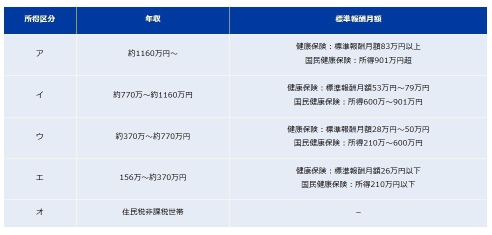 同69歳以下であれば「ア」「イ」「ウ」「エ」「オ」の5段階に分かれています(70歳以上は3段階)。