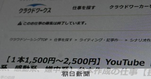 同社は、仕事依頼を非公開にする措置をとった発注者数や件数は明らかにしていない。だが、非公開措置を取ったと同社が認めたある発注者について朝日新聞が調べたところ、昨年11月~今年11月、「中国批判」「嫌中」などとうたう動画制作の依頼を、少なくとも14件募集。これらは3日夜までに全て非公開となっていた。