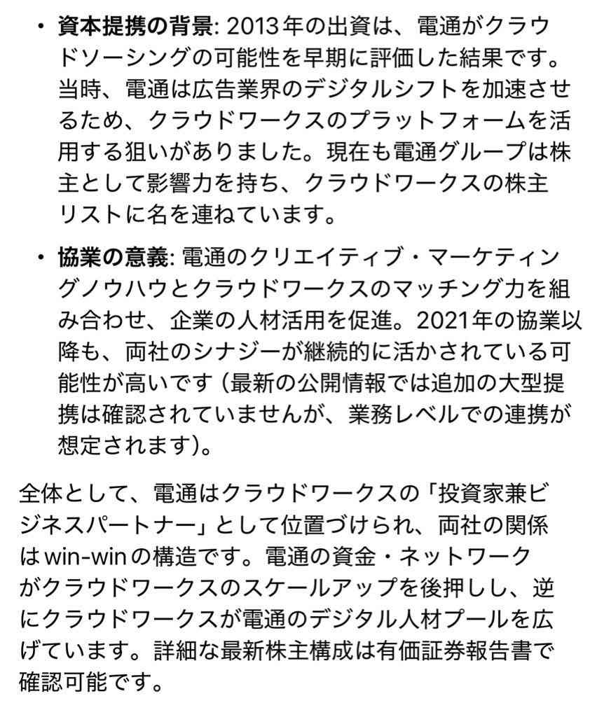 電通、クラウドワークスと資本提携し業務も共に行う仲だった😲あっ