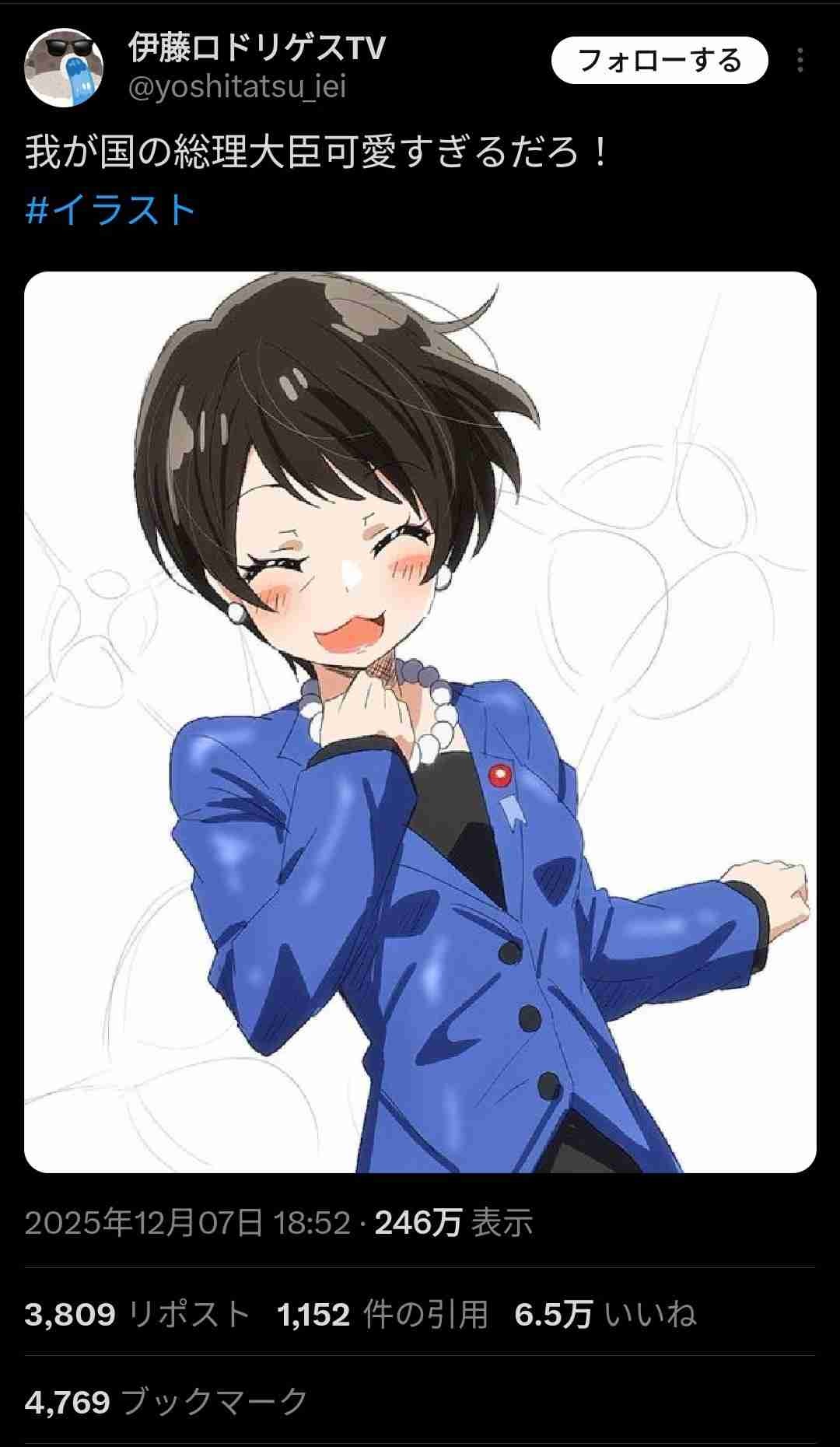 ネトウヨ「高市早苗さん可愛すぎる…!」ネトウヨから見た高市早苗がこれ 7万いいね