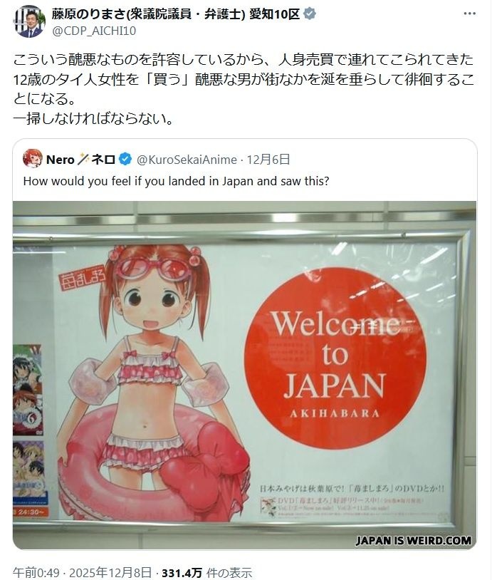 【高市】 立憲民主党議員「苺ましまろ」を醜悪なもの認定。一掃することを宣言 [707978541]