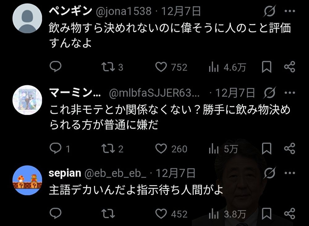 - いい大人が自分の飲み物すら決められないってどうなの?