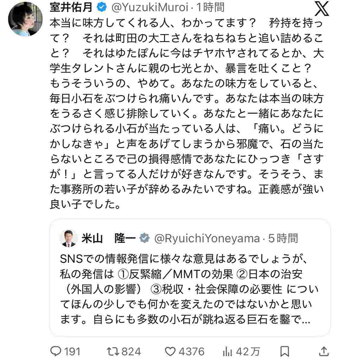 自分が苦しんでる時にレスバしてた米山が悪いと思うけどこれは違う