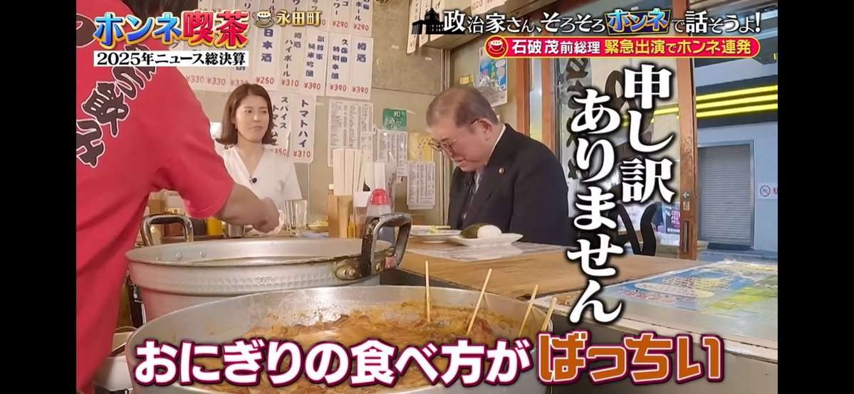 【小野田紀美悲報】石破茂、テレビ番組で女の子に「おにぎりに遺恨あるよね?食べ方がばっちい」と言われ「申し訳ありません」と平謝り
