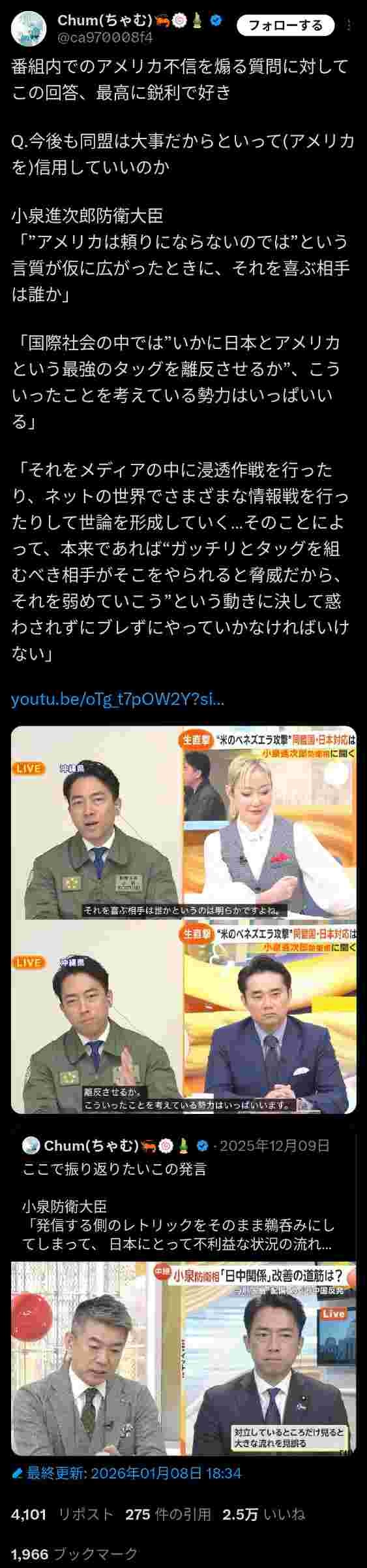 嫌儲はトランプ支持多いからこれはいくら小泉でも賛同だね - 67 名前:ここからは表現の自由でイカせていただきます 投稿日時:2026/01/08(木) 22:50:42.13 ID:3jFnycCa0