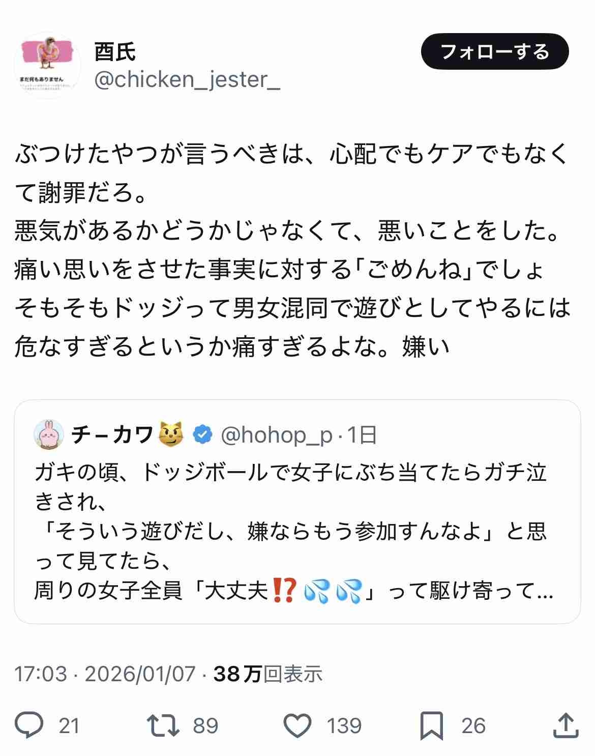 女子もそうなんだろう - 18 名前:ここからは表現の自由でイカせていただきます 投稿日時:2026/01/09(金) 04:26:07.81 ID:IzKP/0Ed0