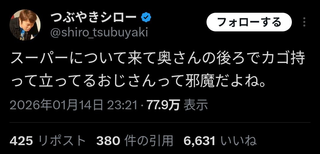 実際のスーパーでは男はすげー邪魔 - 24 名前:ここからは表現の自由でイカせていただきます 投稿日時:2026/01/15(木) 14:53:42.98 ID:vh1Y1YVt0