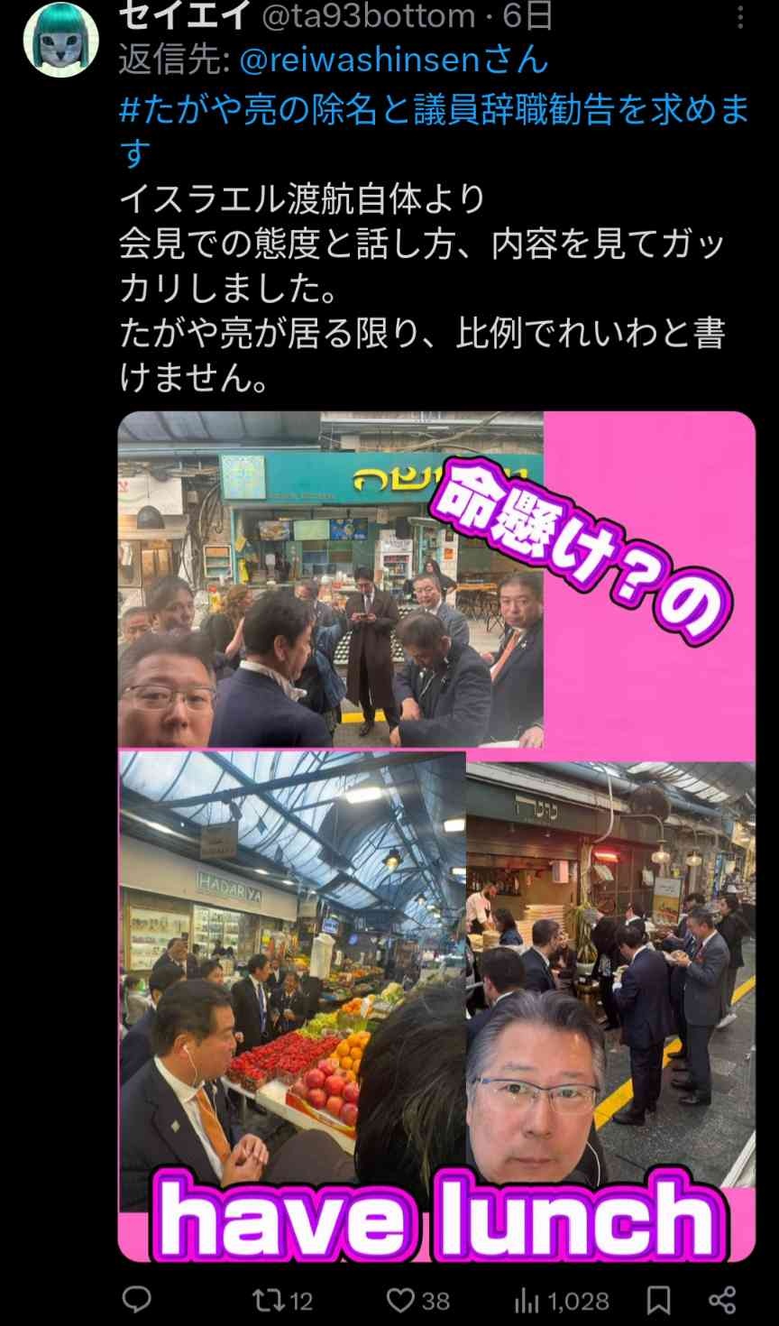 れいわ新選組、イスラエル訪問の賛否で内紛が起こる