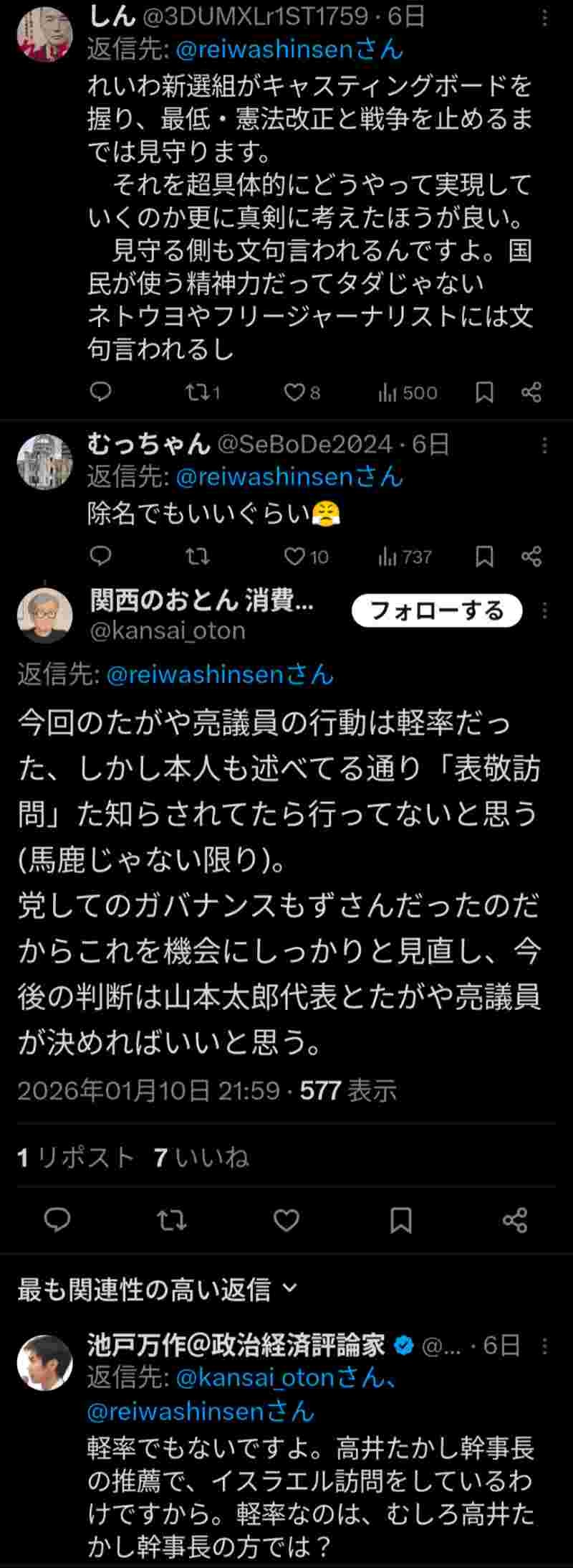 れいわなんて元からネトウヨと反対なのに - 23 名前:ここからは表現の自由でイカせていただきます 投稿日時:2026/01/18(日) 13:43:53.19 ID:kW4vqBkY0