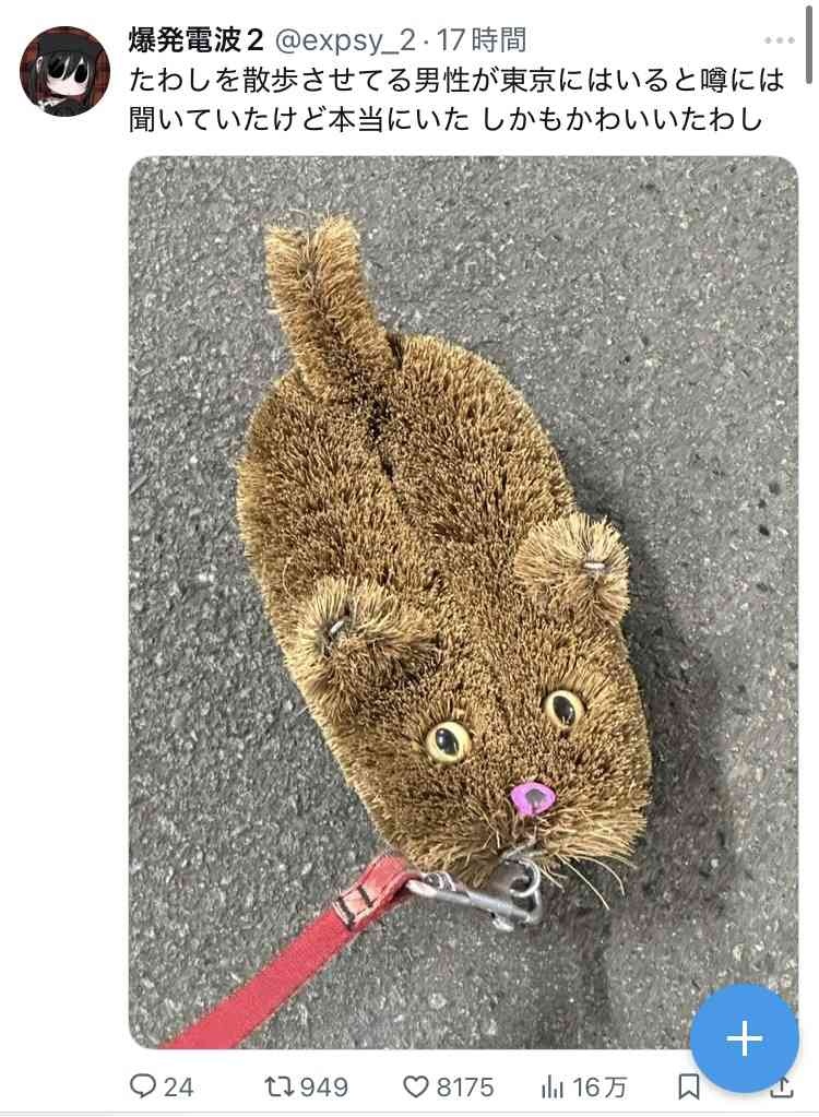 たわしを散歩させてる男性が東京にはいると噂には聞いていたけど本当にいた