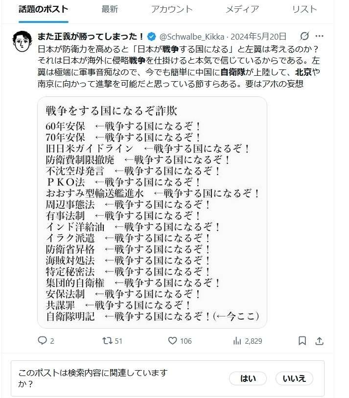2年前の普通の日本人「パヨクは日本が中国に戦争を仕掛けると思ってる。自衛隊が北京落とせるわけないだろ😂」