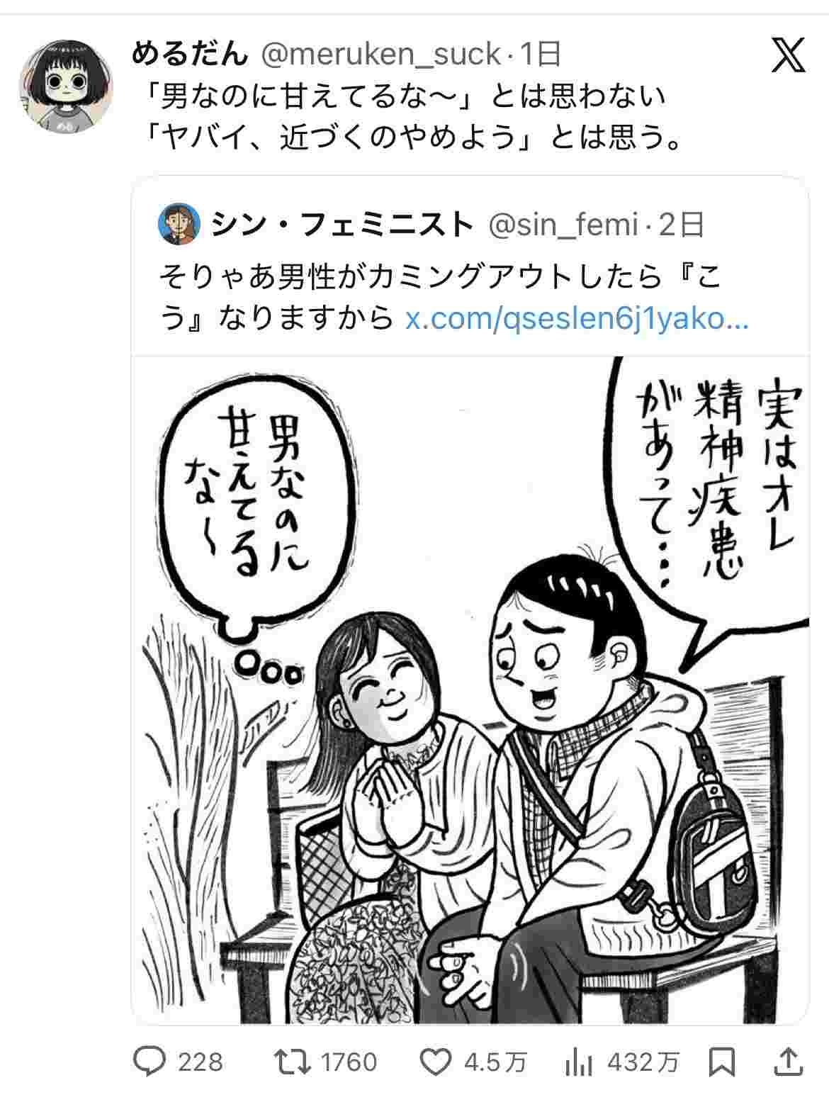 女の子「男に精神障害があったら『ヤバイ、近づくのやめよう』ってなる」4.5万いいね