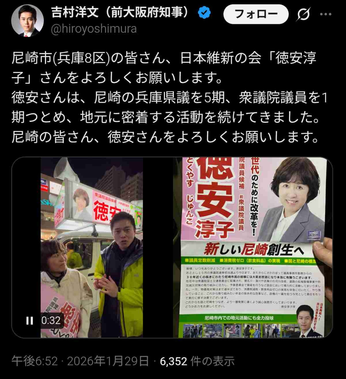 維新の吉村はん。 自民党の重鎮・青山繁晴さんが立候補する兵庫8区を訪問。 維新の候補者を全力応援 🤗