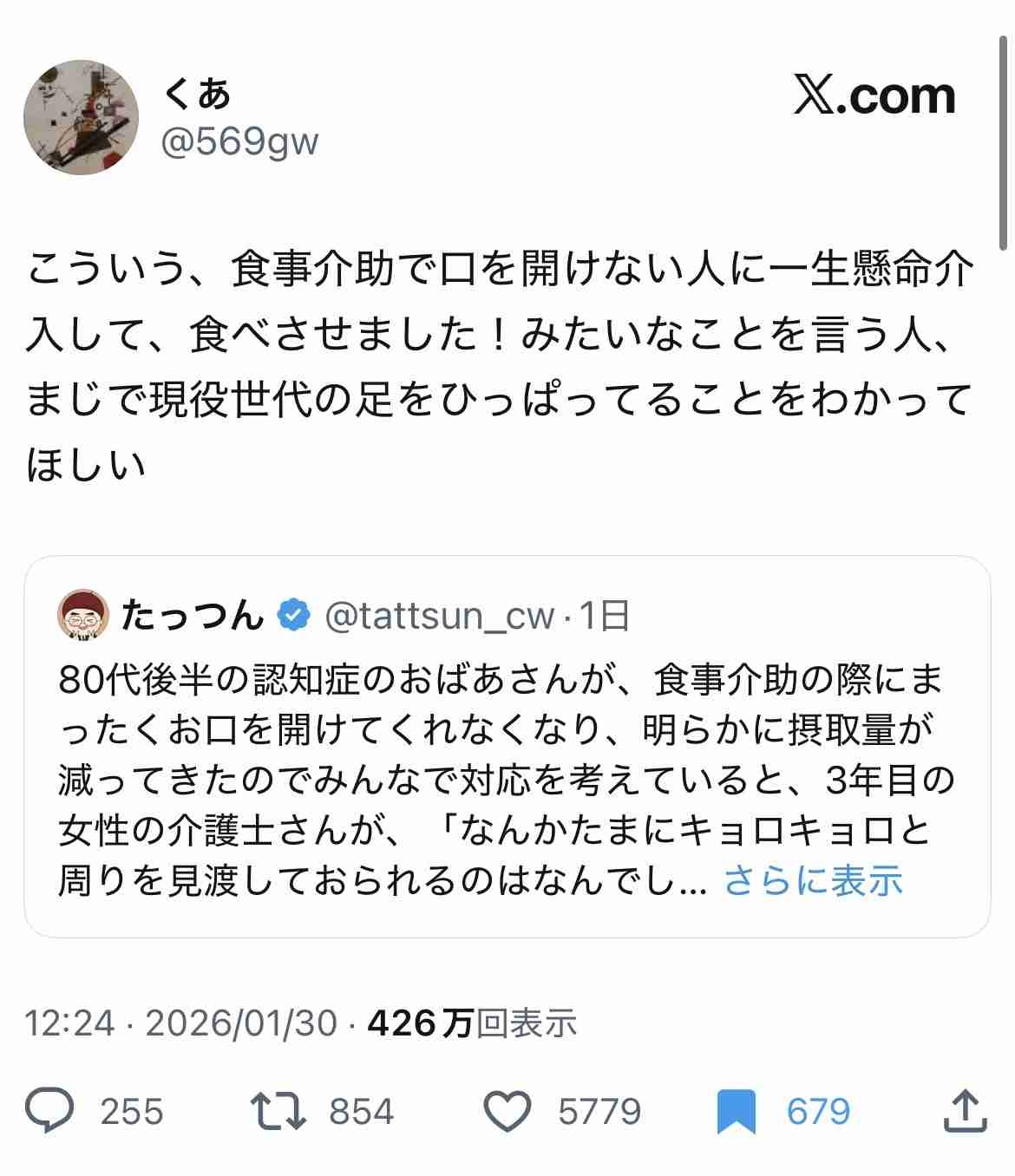 他人に介護なんてやらせてまで生かす必要はないな - 46 名前:ここからは表現の自由でイカせていただきます 投稿日時:2026/01/31(土) 11:55:54.38 ID:TFPXLQLv0