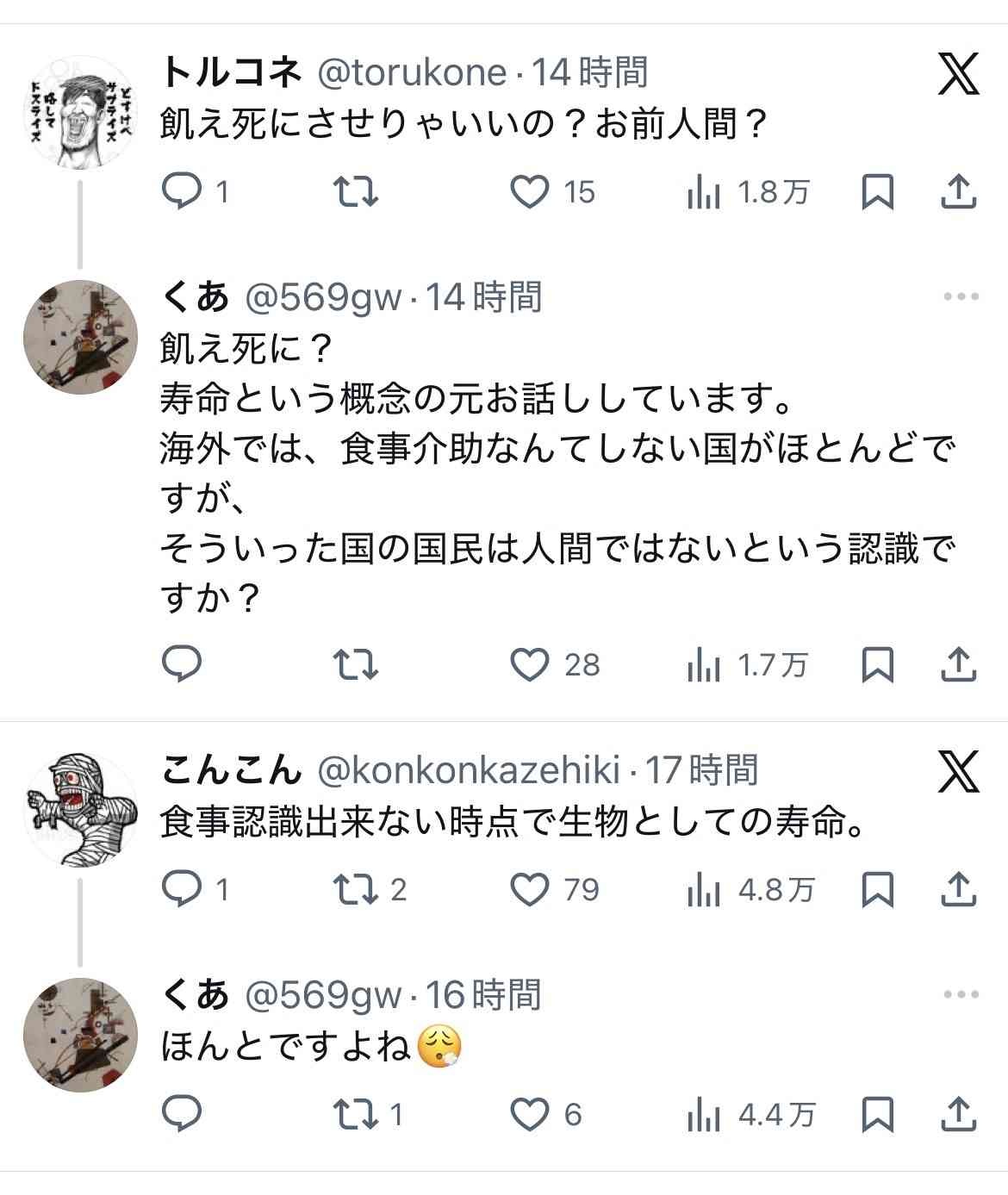 - 寿命だから介護、介助すべきじゃないなら、医療は不要だな