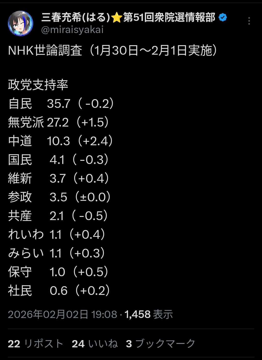 参政党が伸びないのと維新が減らないのはおかしいなw