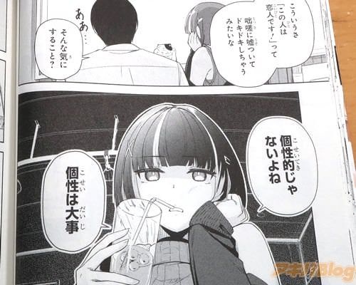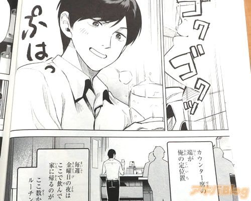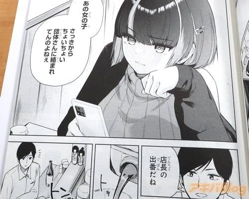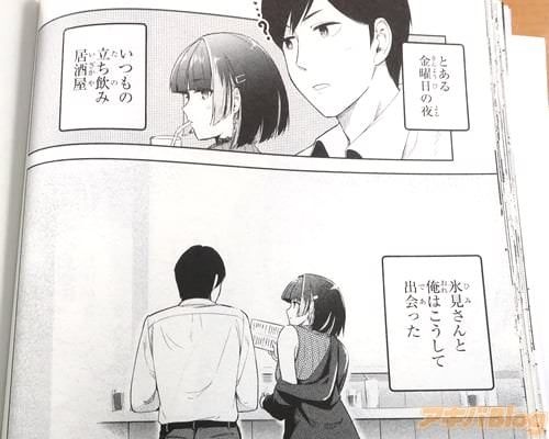 - 今回発売になったコミカライズ「立ち飲み居酒屋でクーデレダウナー系女子大生が隣に来る話」1巻【AA】には第1話から第7話と、第8話前編・後編を収録(もくじ)し、アニメイト秋葉原2号館ではポスターや複製原画と共に展開されていて、販促POPは『キミの隣で、じんわり酔いたい』で、裏表紙が『乾杯しよ、砺波さん』、『立ち飲み居酒屋で出会った、“アラサー会社員”と“クールな女子大生”』、オビ謳い文句は『仕事終わりにクールなあの子と並んで乾杯――』、『じんわりチルい立ち飲みラブコメ』だった。