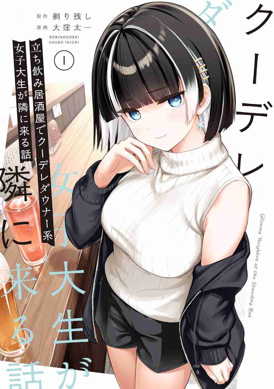 『立ち飲み居酒屋でクーデレダウナー系女子大生が隣に来る話』は、剃り残し氏がWEB小説サイト「カクヨム」などで『立ち飲み居酒屋で鈍めのアラサーおじさんの隣にクーデレダウナー系女子大生が来る話』のタイトルで発表されているWeb小説のコミカライズで、コミックナタリーによると『独身アラサーの会社員・砺波誠也は、毎週金曜日に行きつけの居酒屋で1人立ち飲みをするのがルーチン。ある日の夜、ナンパに絡まれていた芸大通いの女子・氷見涼を助けたことをきっかけに、彼女と隣合って飲む日々が始まる』というお話。